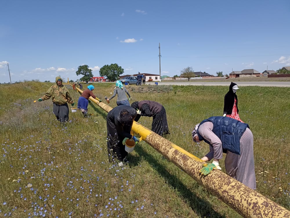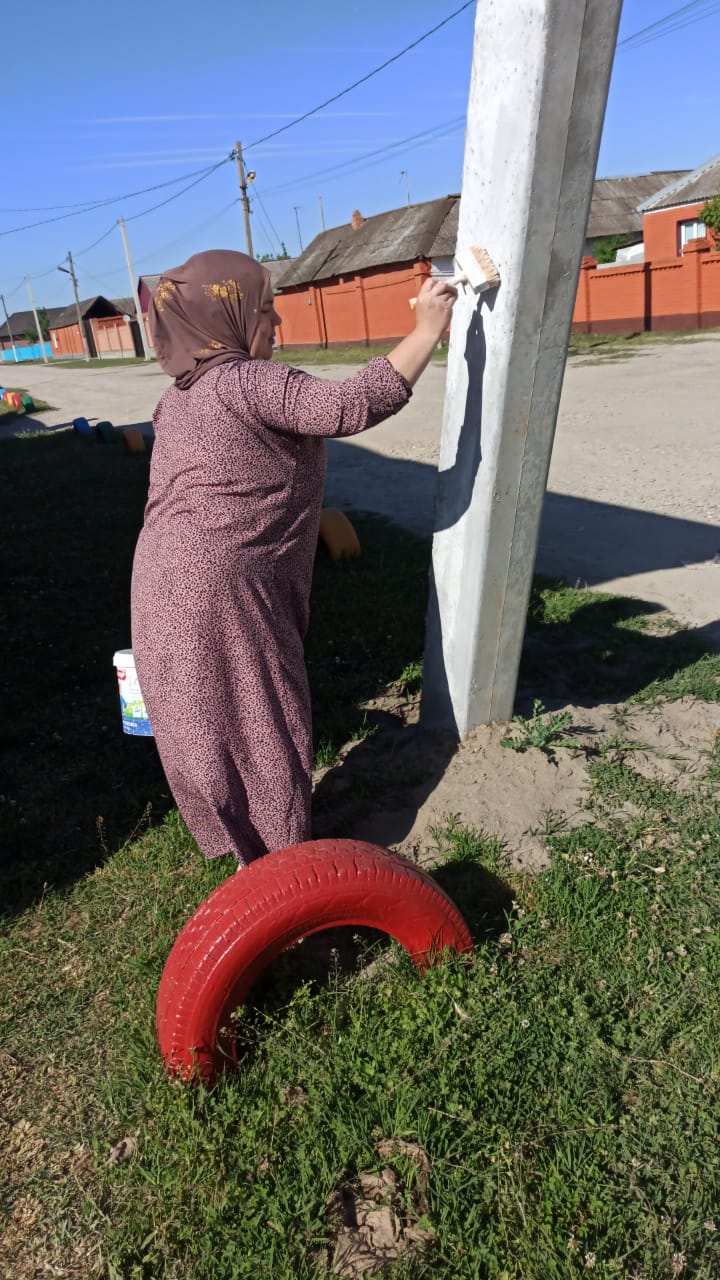 Очищены газоны от мусора, скошена трава, выметены игровые площадки. Убран мусор на закрепленных участках, а также вдоль трасы была проведена покраска газовых труб. Провели побелку деревьев.