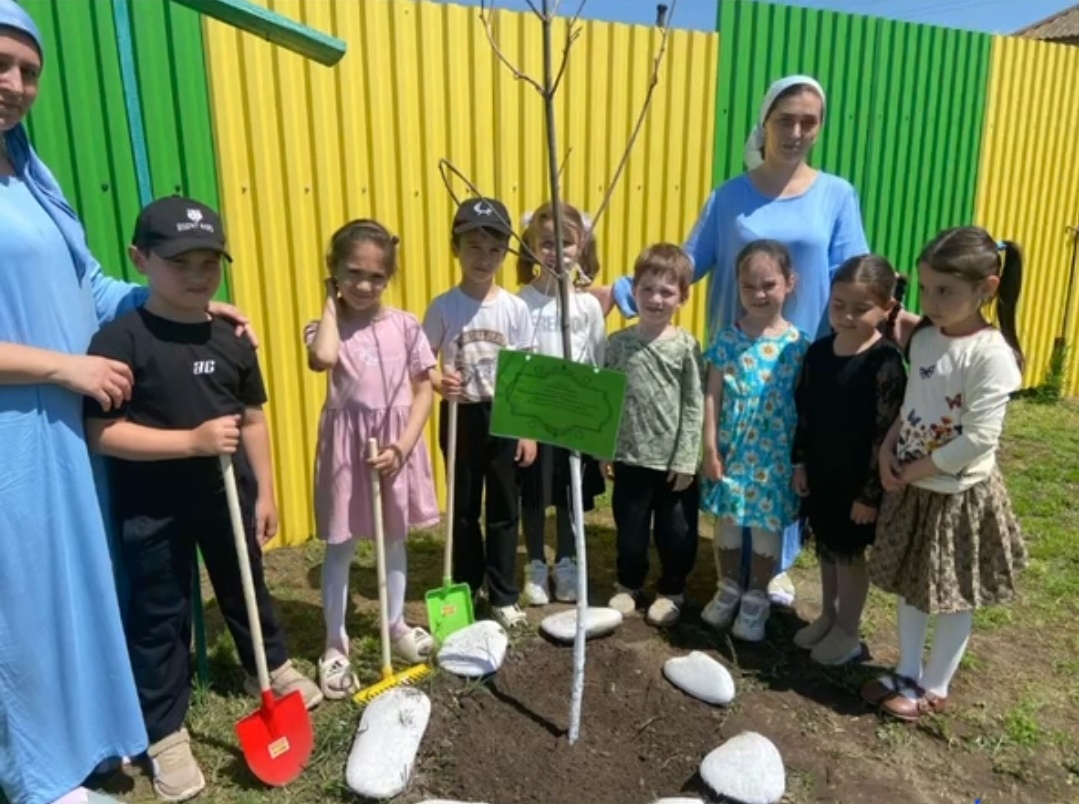 Дети вместе с воспитателями посадили саженец на территории образовательного учреждения!)